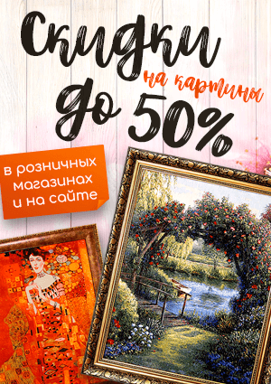 В наших магазинах долгожданная акция на картины, гобелены! Скидка до 50%!
