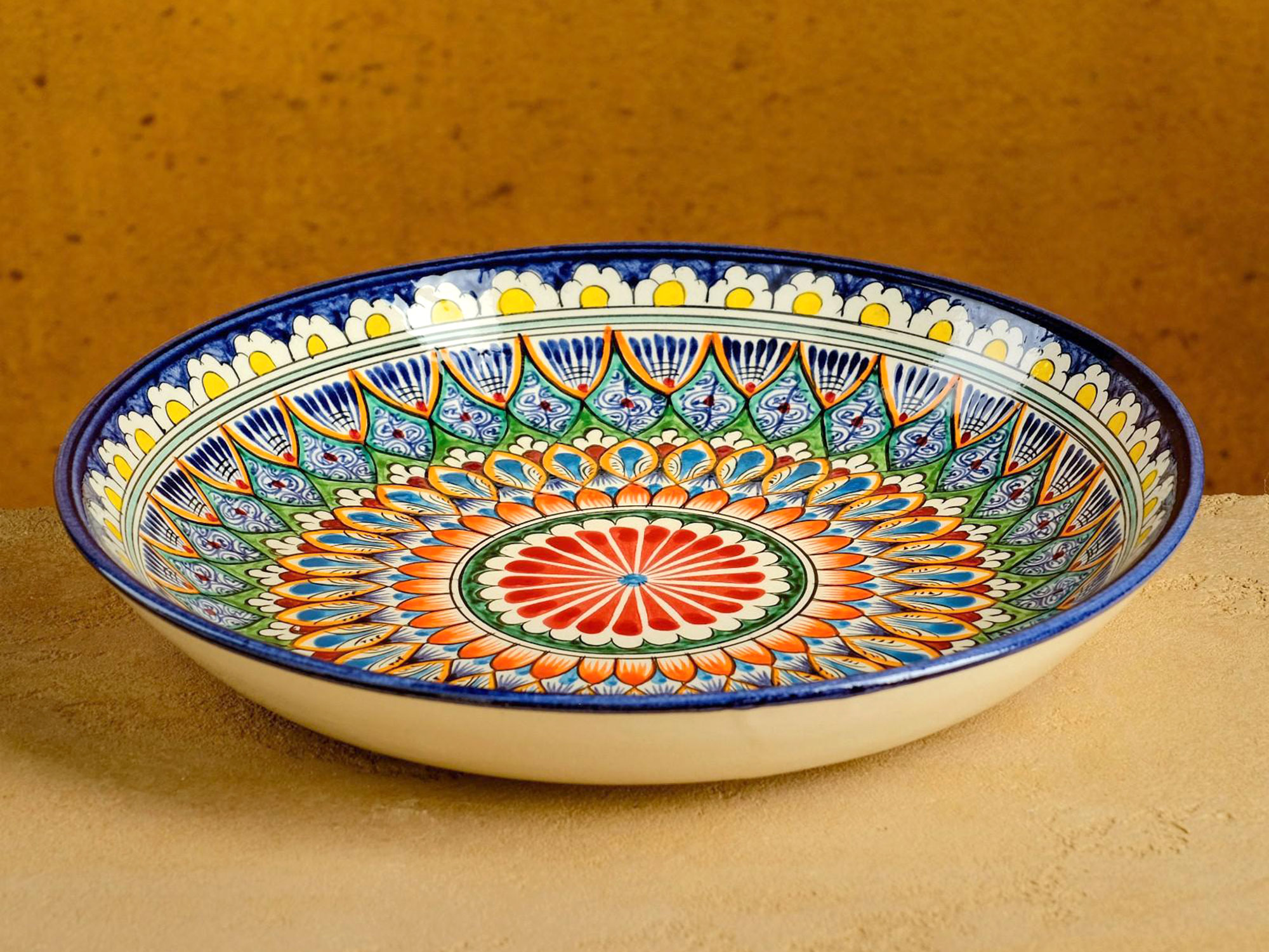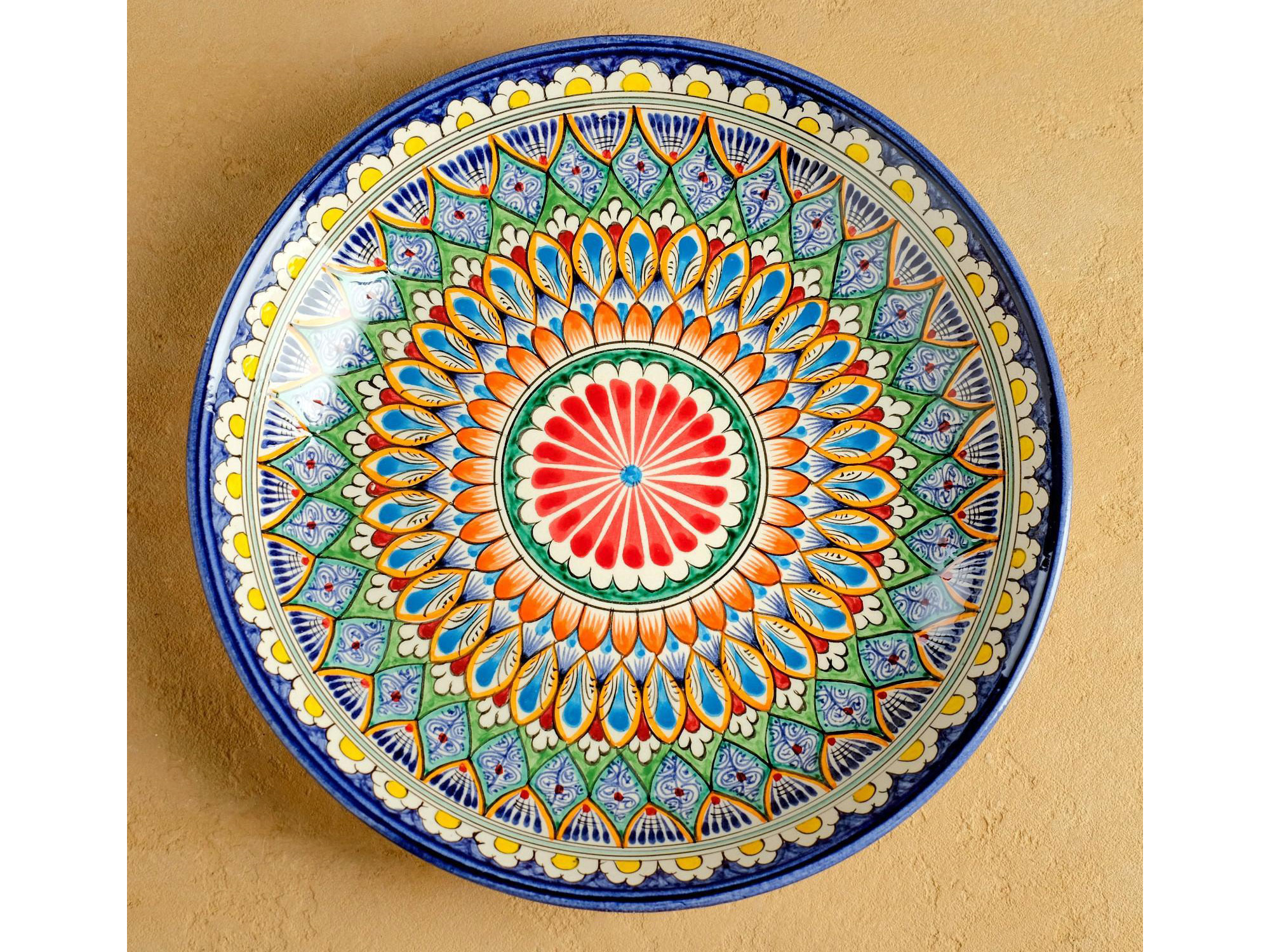 Ляган узбекский Риштанская керамика «Узоры», для плова, d=25 см, разноцветный