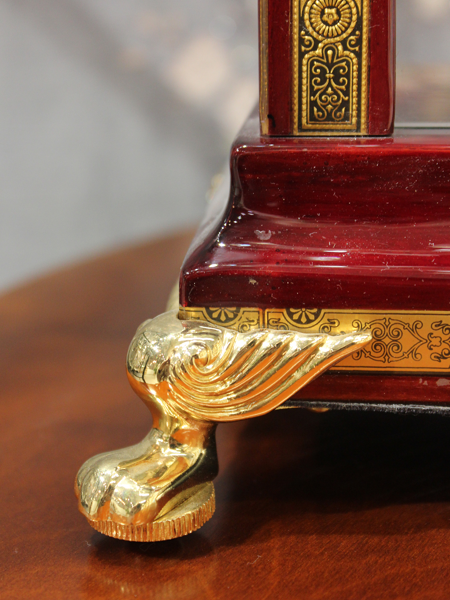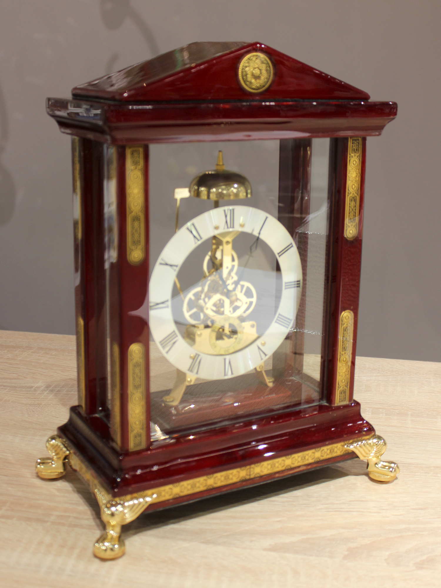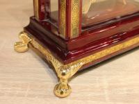 Настольные часы «Лувр» от Credan S.A. (Испания). Это элегантное изделие, вдохновлённое знаменитым музеем в Париже, отличается изысканным дизайном и высоким качеством исполнения. - Размеры: 38х35х25 см. - Материал: корпус из дерева с многослойным глянцевым лаком, декоративные элементы из латуни с позолотой. - Механизм: кварцевый, открытый. - Страна производства: Испания. Четыре колонны и основание выполнены из орехового дерева, покрыты двенадцатью слоями лака и отполированы, что обеспечивает долговечность и блеск. Латунные элементы добавляют изделию изысканности. Открытый часовой механизм позволяет наблюдать за работой механизма, что является характерной чертой коллекции Credan S.A. Часы созданы в честь Лувра — одного из самых известных музеев мира. Дизайн отражает архитектурную эстетику и богатую историю этого здания. Уход: избегайте резких перепадов температур, не подвергайте изделие механическим воздействиям. Для очистки используйте мягкую ткань, не применяйте абразивные средства.