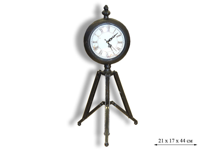 Ретро-часы P10026 — это стильный аксессуар с белым круглым циферблатом, украшенным римскими цифрами. Высота часов на металлических ножках составляет 44 сантиметра. Цвет изделия — чёрный. Эти часы гармонично впишутся в любой интерьер и создадут уютную атмосферу.