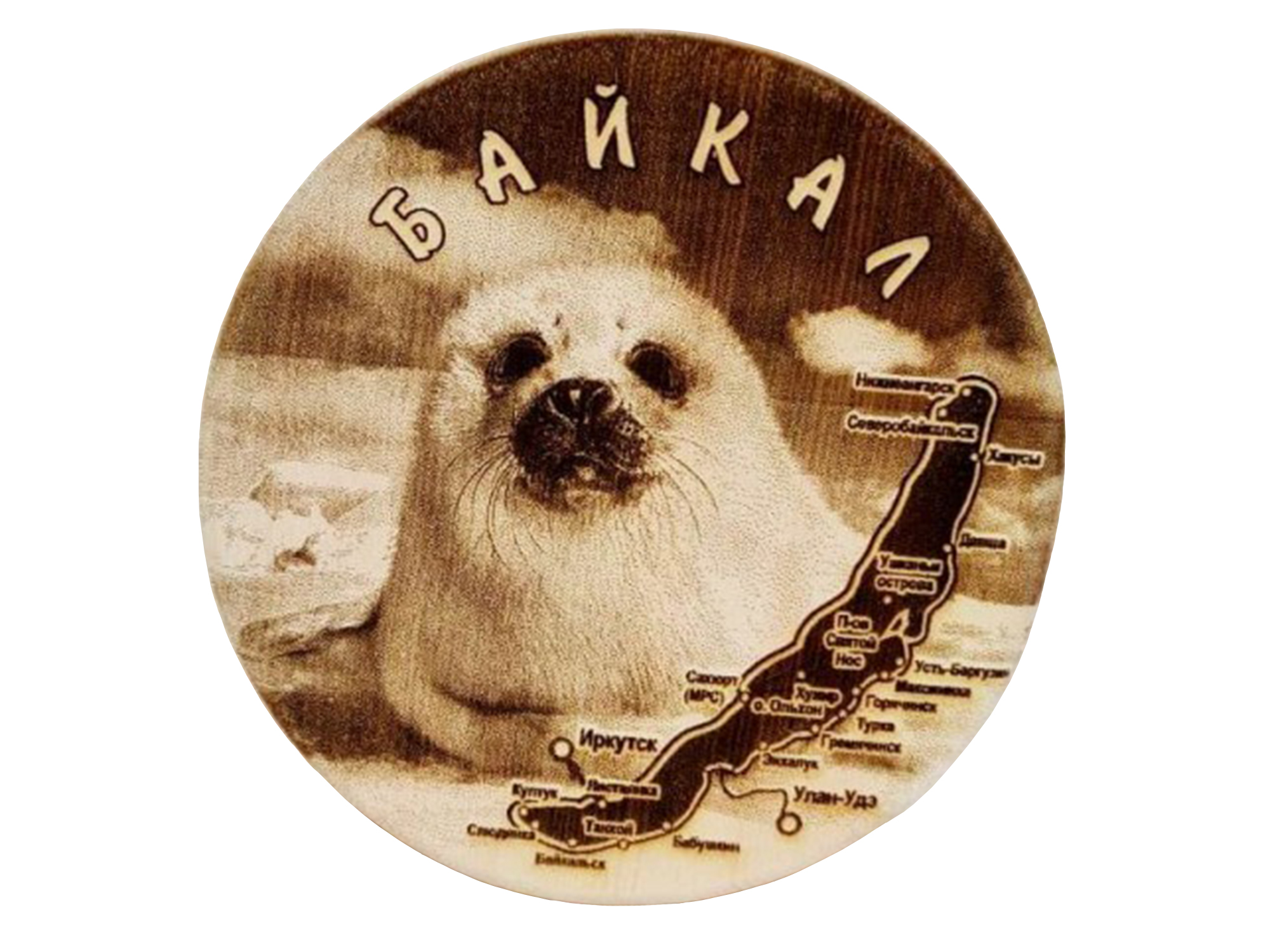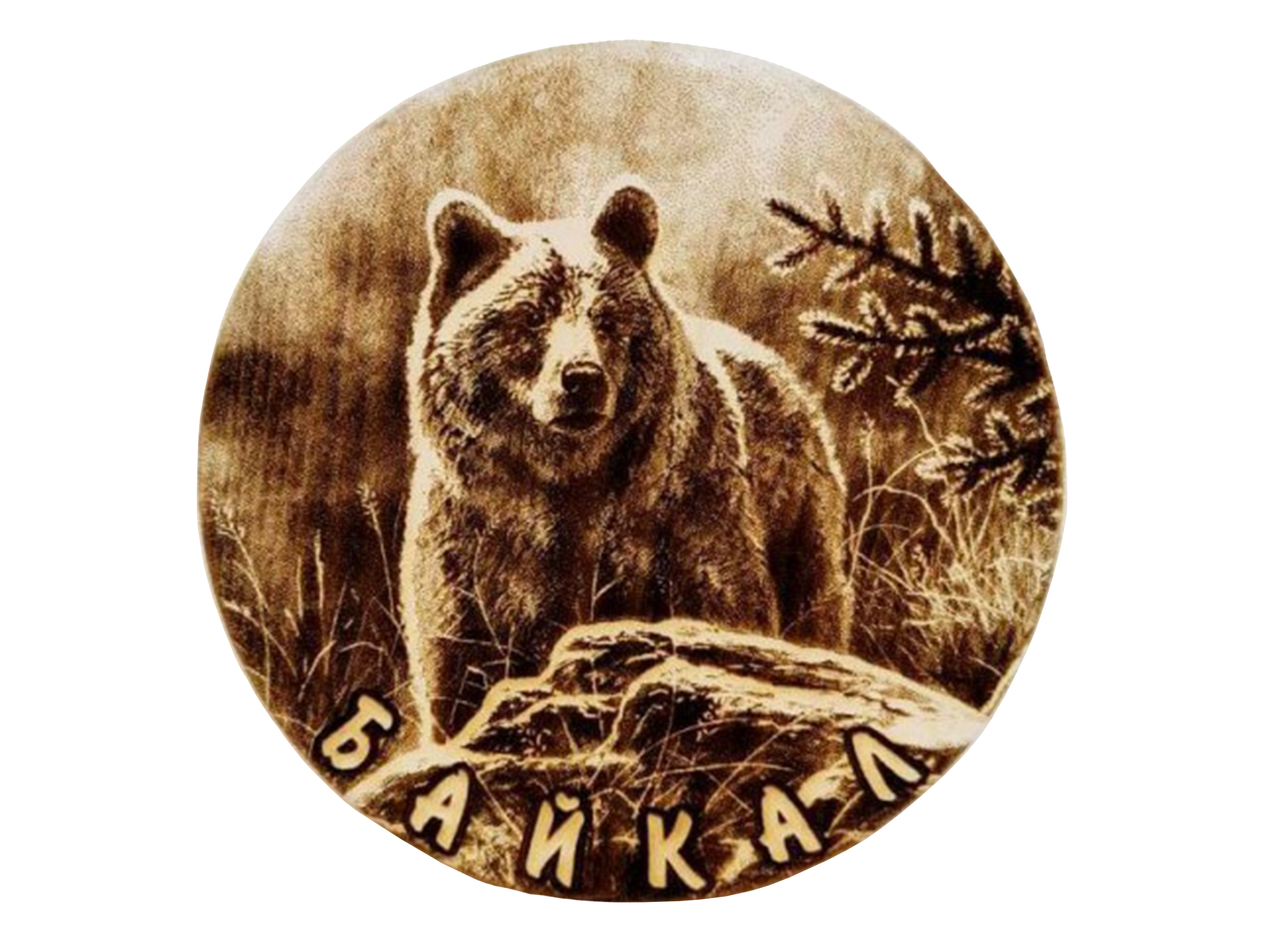 Деревянная разделочная доска «Байкал» диаметром 18 см — сочетание природной эстетики и практичности. Изготовлена из натурального кедра — ценной породы дерева с антисептическими свойствами и приятным ароматом. Украшена художественной гравировкой с изображением животных, обитающих на берегах озера Байкал. Идеальный аксессуар для кухни и тематический сувенир, напоминающий о красоте сибирской природы. Ключевые преимущества - Натуральный материал: кедр — экологичная, безопасная для контакта с пищей древесина с природными антисептическими свойствами. - Компактный размер: диаметр 18 см оптимален для нарезки небольших порций продуктов — овощей, фруктов, сыра, колбасы, хлеба. - Уникальный дизайн: лазерная гравировка с изображением байкальских животных (нерпа, медведь, волк и др.) придаёт доске индивидуальность и делает её элементом декора. - Долговечность: кедровая древесина устойчива к гниению, не рассыхается и служит много лет при правильном уходе. - Гигиеничность: структура кедра препятствует размножению бактерий, поверхность не впитывает запахи продуктов. - Эстетика: тёплый оттенок кедра и детализированная гравировка гармонично вписываются в интерьеры в стиле эко, кантри, рустик или этно. - Универсальность: подходит для нарезки и сервировки — можно подавать закуски прямо на доске. - Лёгкость ухода: простая очистка и возможность периодической обработки маслом для сохранения свойств дерева.