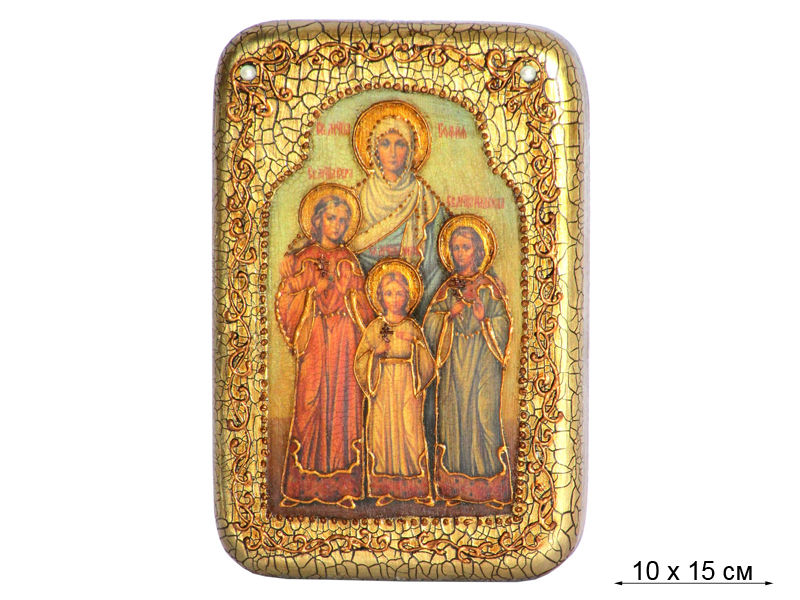 Олицетворением непоколебимой веры является икона Вера Надежда Любовь и мать их София. Благочестивое житие мучениц и их трагическая кончина трогают до глубины души. Размещая образ у себя дома, следует знать, как истинно верили и искренне молились Господу маленькие девочки и их мама, как бережно хранили любовь к Христу и не предали его, не смотря на ужасные пытки, которым их подвергли нечестивцы. По сложившейся традиции, икона Вера Надежда Любовь и Софья считается семейной: обратиться к ней с молитвенным прошением в самых разных нуждах и особенно в делах семьи могут все верующие. Особым покровительством Святые одаривают наречённых их именами христианок Мудрая мать дала дочерям имена, олицетворяющие три значимых христианских ценности. В молитвах перед их светлыми ликами мы просим мудрости для сохранения этих добродетелей как в себе, так и в окружающих нас людях. Глядя на икону Святой Софии Веры Надежды Любови, мы вспоминаем мужество и крепость духа хрупких девочек, брошенных на глазах у матери в котёл с кипящей смолой, в огненную печь и жестоко обезглавленных палачами, убоявшимися их силы, дарованной Христом. Смиренные мученицы мужественно выдержали страшные испытания и лишь укрепились в вере, явив людям образец для подражания и указав путь к спасению.