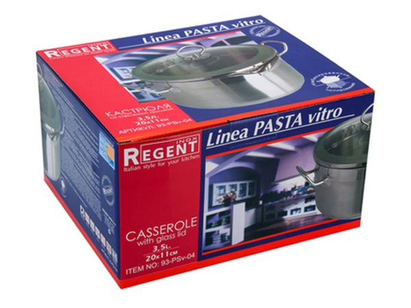 Кастрюля PASTA vitro от Regent Inox сочетает в себе многофункциональность, легкость в использовании и оригинальный дизайн. Кастрюля 3,5 л 20х11 см "PASTA vitro" изготовлена из нержавеющей стали 18/10. Металлические ручки,не нагреваются во время приготовления. Измерительная шкала позволяет с легкостью отмерить нужный объем. Кастрюля может использоваться на всех видах кухонных плит, включая индукционные. Комбинированная полировка и загнутые вверх ручки придают кастрюле легкую игривость.