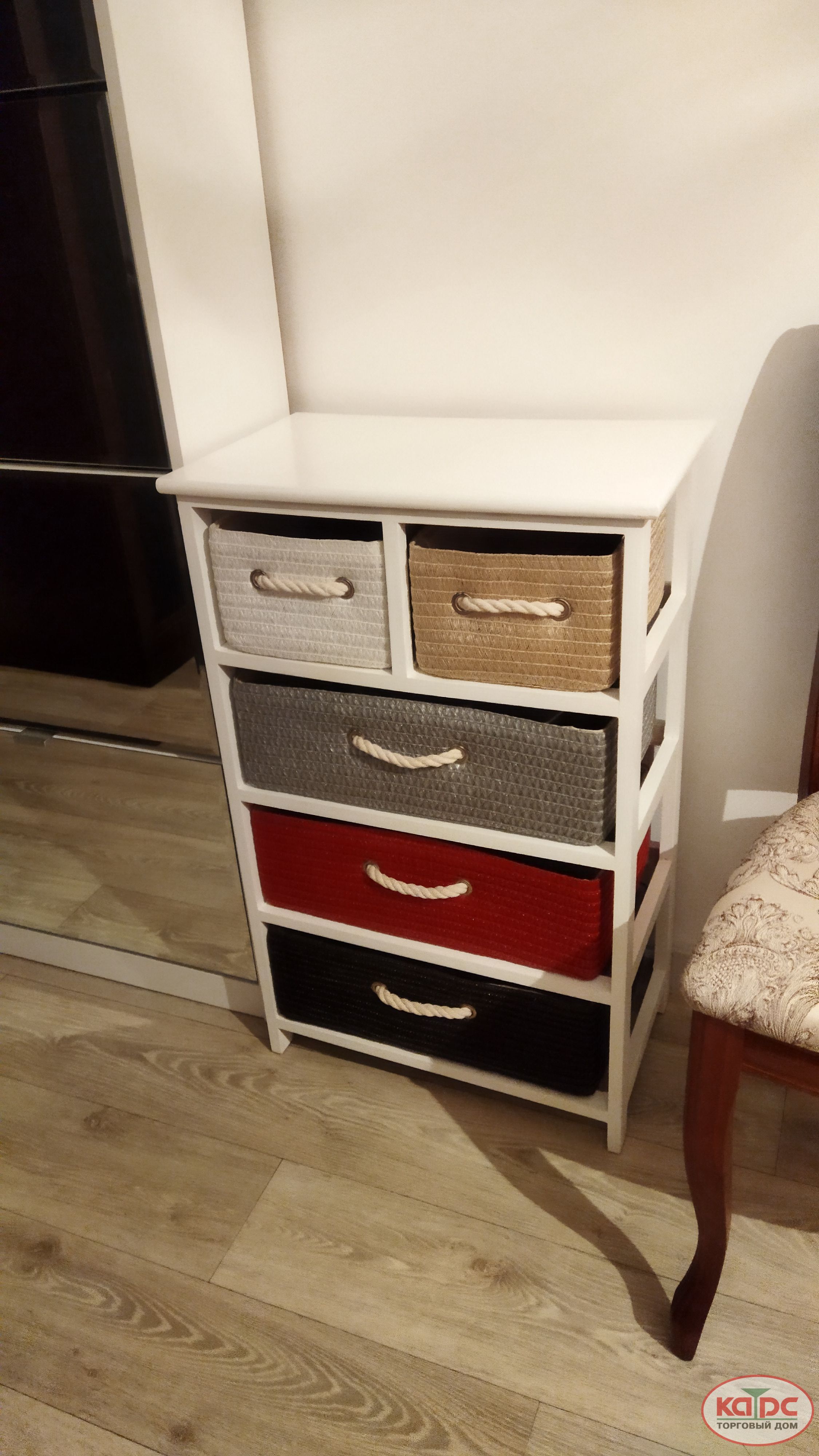 Комод с пятью плетёными ящиками. - Габариты: 50х30х76 см - Количество ящиков: 5шт - Материал ящиков: плетёный материал. - Материал каркаса: прочная конструкция (древесина). - Цветовая гамма: комбинация мягких тонов (белый, серый, бежевый, вишнёвый, коричневый). - Производитель: Ziwei Decoration (Китай). Преимущества: - Стильный дизайн. Разноцветное исполнение с гармоничным сочетанием оттенков легко впишется в любой интерьер — от минимализма до эклектики, добавив пространству индивидуальности и уюта. - Вместительность. Пять отдельных ящиков позволяют: систематизировать хранение одежды и аксессуаров; удобно разместить галантерею и мелкие предметы, хранить спальные принадлежности и полотенца. - Прочность и долговечность. Надёжный каркас обеспечивает устойчивость конструкции и длительный срок службы даже при интенсивной эксплуатации. Почему стоит выбрать этот комод? - Эстетика: разноцветная палитра оживит любое пространство. - Практичность: пять отдельных ящиков обеспечивают удобную организацию хранения. - Компактность: оптимальные габариты подходят для разных помещений. - Надёжность: прочный каркас гарантирует устойчивость и долгий срок службы. Добавьте красок в ваш интерьер с комодом от Ziwei Decoration — стиль, функциональность и яркие эмоции в каждой детали!
