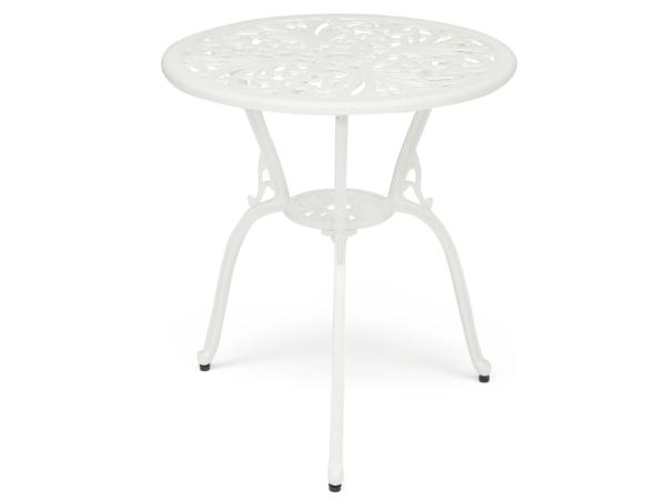Комплект мебели стол 60х67 см+2 стула 53х41х89 см. Устойчивый стол на трех ножках, с дополненной миниатюрной нижней полочкой, и два удобных стула выполнены из литого алюминия и покрашены в белый цвет. Эта функциональная, прочная и красивая мебель займет важное место в оформлении вашего сада, лоджии, дачи. Комплект устойчив к любым погодным условиям и будет радовать вас долгие годы своим первоначальным видом. Состав набора: стол, 2 стула. Материал: алюминиевый сплав. объем: 76635 куб. см. Ширина стула: 53 Глубина стула: 41 Высота стула: 89 Ширина стола: 60 Высота стола: 67