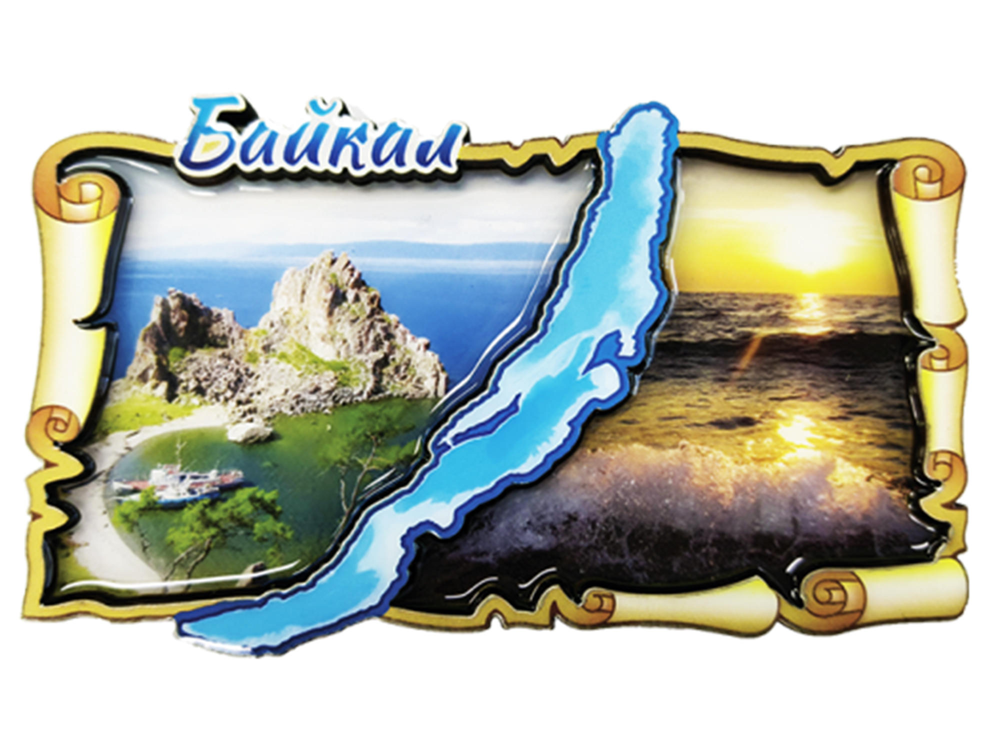 Оригинальный магнит «Байкал» из прочной смолы — стильный сувенир, который перенесёт Вас к берегам легендарного озера. В центре магнита — точное очертание Байкала, вокруг которого расположены живописные виды озера: прибрежные скалы, кристально чистая вода и неповторимый закат. Магнит станет не просто украшением холодильника, а маленьким окном в мир сибирской природы — он пробудит воспоминания о путешествии или вдохновит на поездку к великому озеру. Магнит подходит для: - украшения холодильников, офисных досок, шкафчиков, металлических панелей и т.д.; - подарка туристам, путешественникам, любителям природы и Байкала; - коллекционирования тематических магнитов и сувениров; - оформления фотозоны или стенда о природных достопримечательностях России; - дополнения к подарочному набору сувениров из Сибири; - школьного проекта о природе Байкала или экологического просвещения; - декорирования кафе, отелей, туристических агентств с сибирской тематикой.