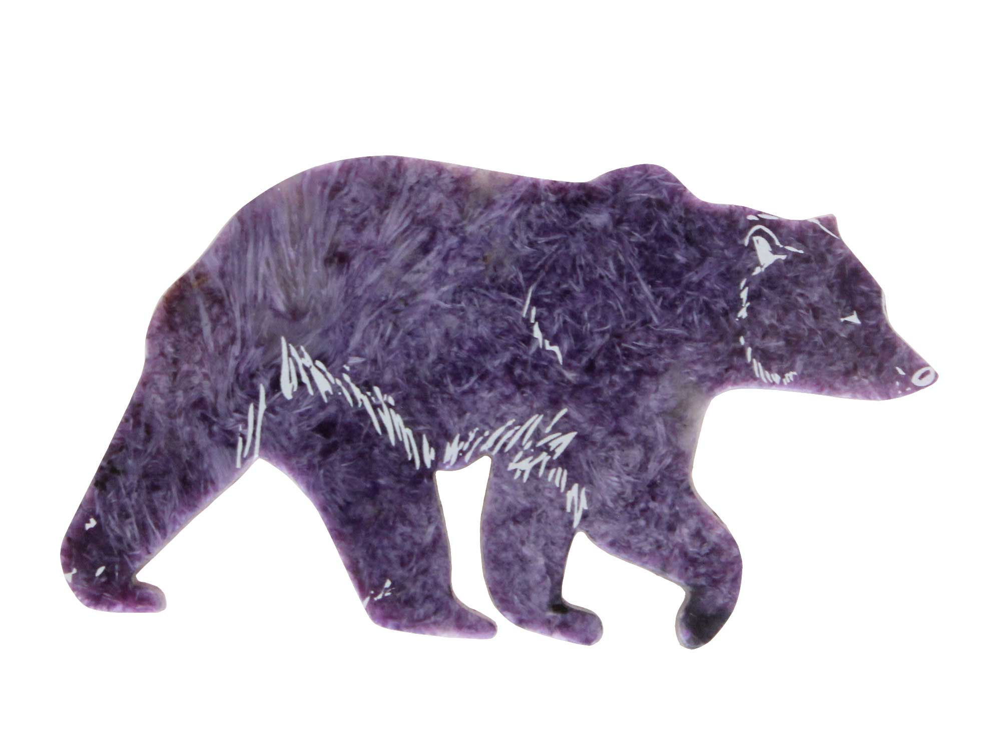 Чароитовый талисман-медведь: фиолетовый оберег из Сибири Роскошный сувенир из редкого сибирского камня Эксклюзивный магнит в форме медведя, созданный из уникального чароита - камня, который встречается только в Восточной Сибири. Этот изысканный талисман сочетает в себе природную красоту и магическую силу. Особенности магнита из чароита: - Натуральный чароит - редкий фиолетовый камень с перламутровым блеском - Символичная форма - медведь как символ силы и мудрости - Размеры: длина - 8,5 см, ширина - 5 см, толщина - 4 мм - Уникальная текстура - каждый камень неповторим - Практичность - надежный магнит для любых поверхностей Уникальные свойства чароита: - Природная редкость - встречается только в одном месте на Земле, в районе озера Байкал Целебная энергия - способствует: - Очищению организма - Укреплению нервной системы - Нормализации сна - Улучшению концентрации внимания Магические качества - считается камнем: - Развивающим интуицию - Защищающим от негативной энергии - Помогающим в принятии важных решений - Способствующим духовному развитию Будет интересен для: - Ценителей редких камней - Коллекционеров уникальных сувениров - Любителей необычных подарков - Путешественников по Сибири - Декораторов интерьера Станьте обладателем редкого чароитового талисмана - частички уникальной сибирской красоты в вашем доме!