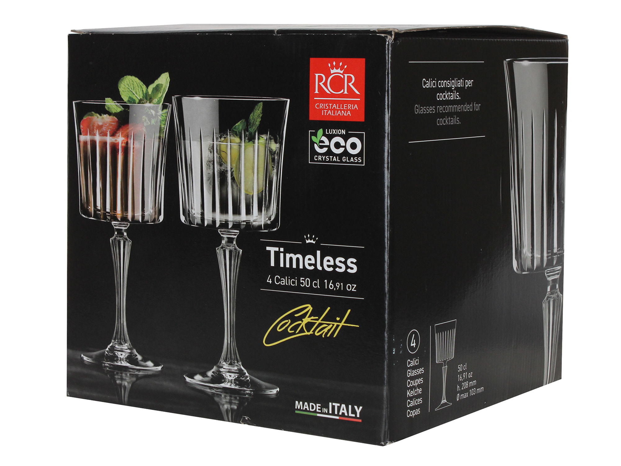 Набор бокалов «Timeless» 500 мл Изысканная классика от итальянского мастера Премиальный набор бокалов «Timeless» от легендарного бренда RCR — воплощение итальянского мастерства и безупречного качества в каждой детали. Характеристики набора Объем бокала: 500 мл Количество в наборе: 4 штуки Производитель: RCR (Италия) Серия: Timeless Коллекция: RCR Материал: экологичное хрустальное стекло LUXION Особенности коллекции Уникальные характеристики бокалов «Timeless»: Очаровывающий блеск хрустального стекла Изысканная игра света на гранях Неповторимый мелодичный звон Экологически чистый материал без содержания свинца Идеальная форма для дегустации вина Созданные с особым вниманием к деталям, эти бокалы не только подчеркнут статус вашего стола, но и позволят в полной мере насладиться вкусом и ароматом любимых напитков. Подарите себе моменты истинного наслаждения с бокалами «Timeless» — символом роскоши и изысканного вкуса.