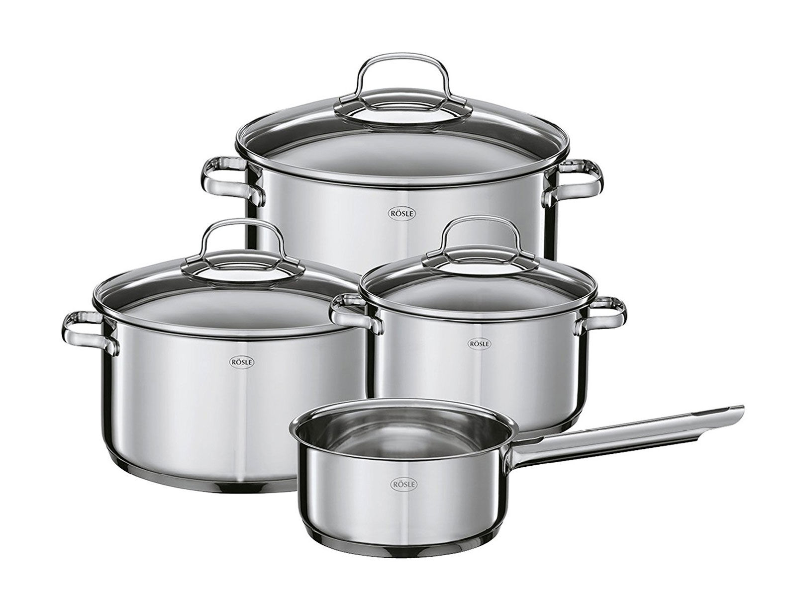 Кастрюли серии Elegance изготовлены из многослойного материала — нержавеющей стали 18/10 и алюминия. Данное сочетание гарантирует быстрое и равномерное распределение тепла по всей поверхности кастрюли, а также обладает высокой теплоемкостью. Специальный обод для удобного слива жидкости. Кастрюли оснащены высококачественными стеклянными крышками. Внутри каждой кастрюли имеется мерная шкала. В набор входит: Ковш без крышки, объем 1,5 л, диаметр 16 см; Кастрюля с крышкой, объем 2,0 л, диаметр 16 см -1 шт. (2 предмета) Кастрюля с крышкой, объем 3,5 л, диаметр 20 см - 1 шт. (2 предмета) Кастрюля с крышкой, объем 5,9 л, диаметр 24 см - 1 шт. (2 предмета)
