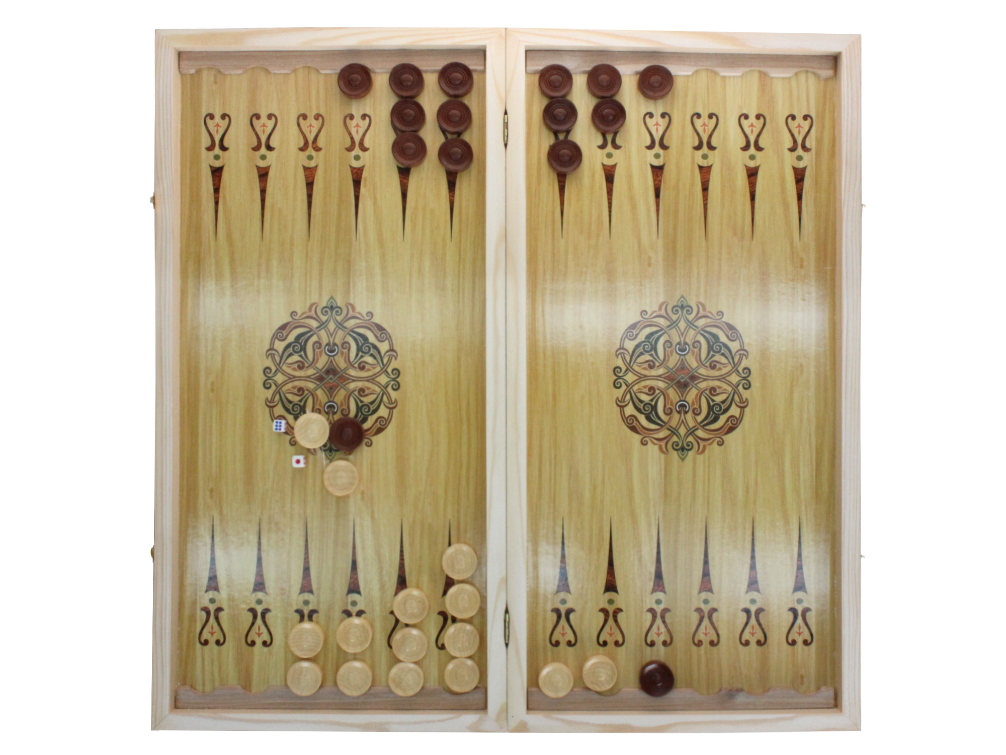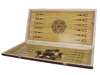Нарды. "Орлан". Игральная доска и фишки выполнены из натурального дерева с нанесением принта под тремя слоями лака. Игровое поле с лунками + самый популярный размер 60 х 30 см, сделают процесс игры максимально удобным и подарят игрокам еще больше удовольствия. Характеристики - Размеры. 60х30 см. - Материал. Дерево. - Страна-производитель. Россия. Правила игры (кратко) - Цель — переместить все шашки своего цвета в «дом» и выбросить их за пределы доски раньше соперника - Игроки по очереди бросают две кости и передвигают шашки на количество пунктов, соответствующее выпавшим очкам. - Шашки двигаются навстречу друг другу (белые — по часовой стрелке, чёрные — против). - Чтобы «завести в дом», шашки должны достичь последней четверти доски. - Выбрасывать шашки можно только после того, как все они оказались в «доме». - Побеждает тот, кто первым уберёт все шашки с доски