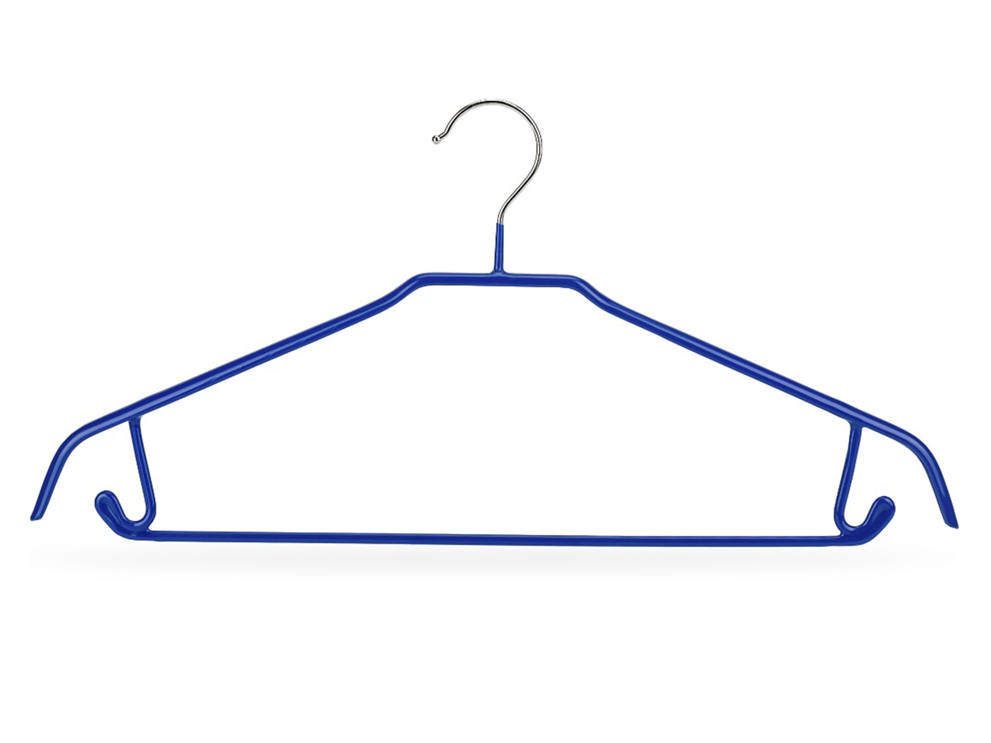 Вешалка предназначена для удобного и компактного размещения верхней одежды в нужных местах. Вешалка изготовлена из металла, снабжена перекладиной для подвешивания брюк или галстуков и пазами для петель юбок.. Ширина вешалки составляет 43 см.