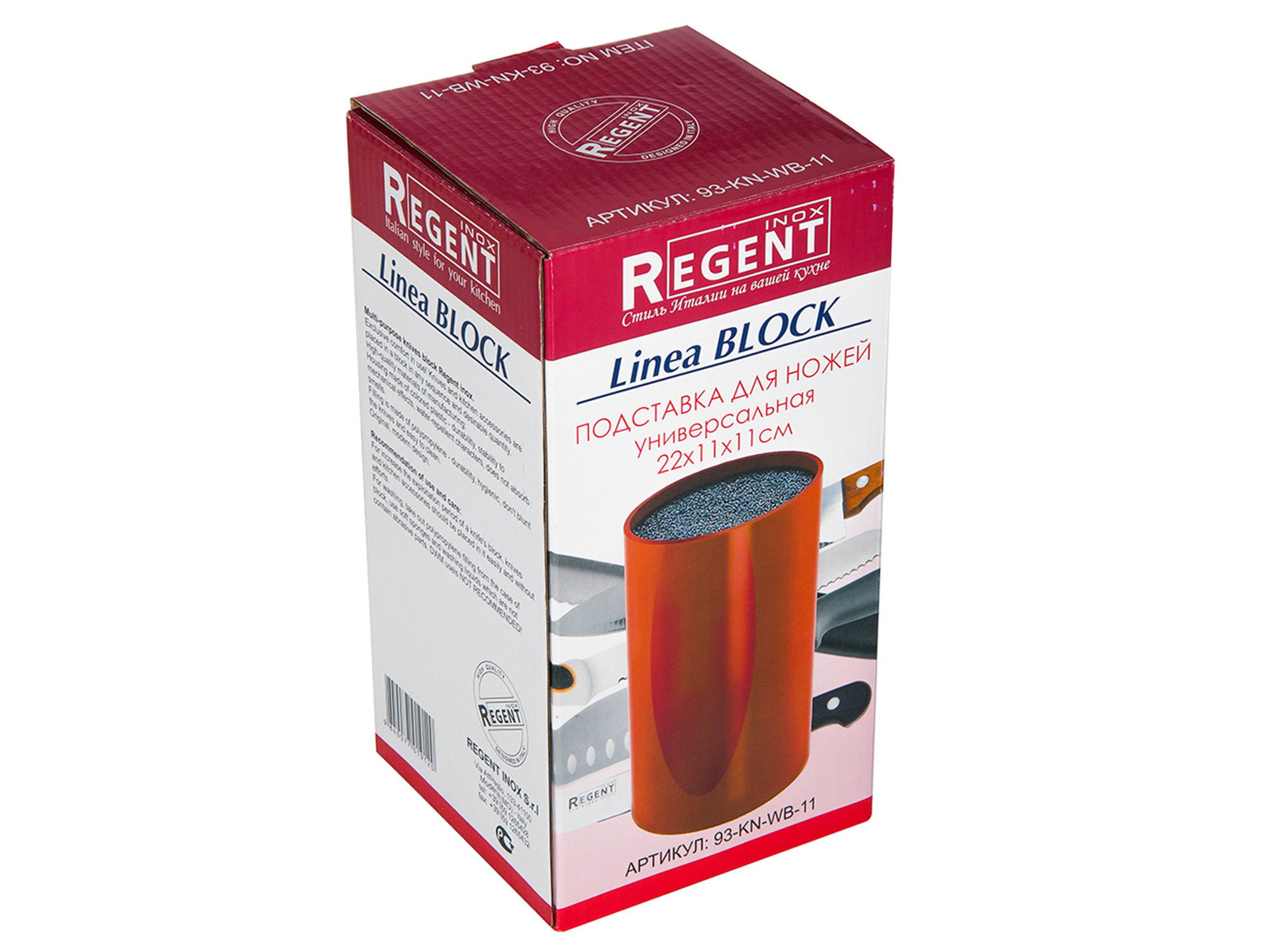 Универсальная подставка для ножей Regent Inox имеет круглую форму и подходит для ножей любых размеров. Изделие 93-KN-WB-11 выполнено из красного пластика и наполнителя - полипропиленового волокна. Все материалы подставки являются экологически чистыми: они не боятся воды, не выделяют опасных веществ и не оставляют пятен. Благодаря гибкой структуре волокон, ножи можно вставлять в любом порядке и под любым углом, при этом не повредив их острый режущий край. Стильный дизайн подставки и необычное сочетание черного и красного привнесут в интерьер кухни яркости и красоты..