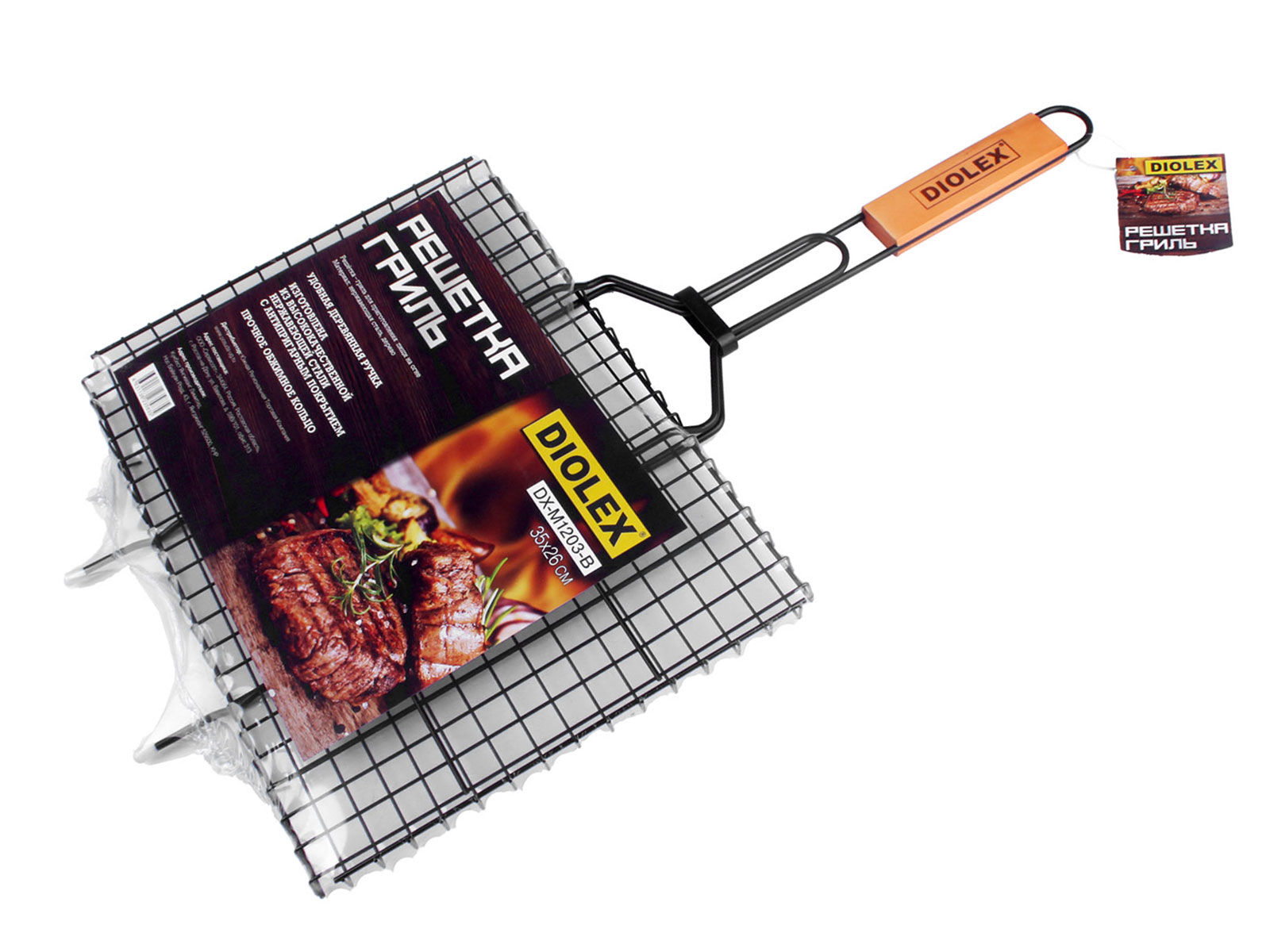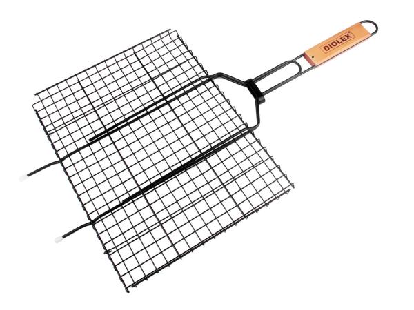 Решетка-гриль изготовлена из высококачественной нержавеющей стали с антипригарным покрытием. Приготовление вкусных блюд из рыбы, мяса или птицы на пикнике становится еще более быстрым и удобным с использованием решетки-гриль. Изделие имеет деревянную вставку на ручке, предохраняющую руки от ожогов и позволяющую без труда перевернуть решетку. Надежное кольцо-фиксатор гарантирует, что решетка не откроется, и продукты не выпадут.