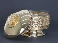 Сахарница с крышкой и ложечкой выполнена из высококачественного стекла и пищевой стали с покрытием 24К Gold Color Plated. Такая сахарница отлично впишется в интерьер современной кухни и внесет яркий акцент в сервировку стола. А для подарка это будет лучший вариант!