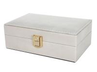 Шкатулка C116, Элегантная шкатулка для хранения ювелирных изделий, часиков и других ценных мелочей. Сочетает современный дизайн с продуманной функциональностью — отличный выбор для организации пространства и стильный аксессуар для интерьера. - Размеры: 16 х 10 х 5,5 см — компактный формат при достаточной вместимости. - Материал: экокожа — приятная на ощупь, износостойкая поверхность. - Цвет: бежевый — свежий, универсальный оттенок, легко сочетается с любым интерьером. - Конструкция: откидная крышка с встроенным зеркалом — удобство при использовании. - Артикул: C116. Преимущества модели: - Практичность. Зеркало на крышке позволяет использовать шкатулку как компактный бьюти-аксессуар. - Защита содержимого. Закрытая конструкция оберегает украшения от пыли, влаги и механических повреждений. - Эстетика. Лаконичный дизайн и качественная отделка придают изделию премиальный вид. - Компактность. Легко размещается на полке, туалетном столике или в шкафу. - Универсальность. Подходит для хранения колец, серёг, браслетов, часов и других мелких предметов. Для кого подойдёт: - для тех, кто хочет аккуратно организовать хранение украшений; д- ля любителей минималистичного дизайна с функциональными деталями; - в качестве подарка для ценительниц изящных аксессуаров; - как элемент декора туалетного столика или комода. Почему стоит выбрать эту шкатулку: - сочетание стиля и практичности; - качественное исполнение и долговечные материалы; - удобное зеркало на крышке — экономия места в интерьере; - универсальный размер для повседневного использования. Идеальный подарок - шкатулка станет прекрасным подарком для мамы, дочери, жены, бабушки, подруги или коллеги на любой праздник, или просто как знак внимания.