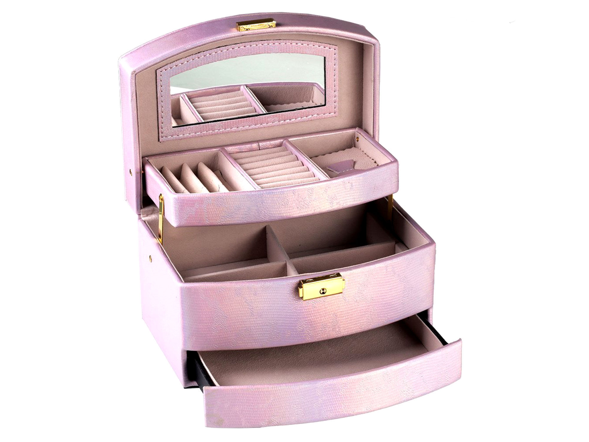 Шкатулка для бижутерии — настоящая находка для женщины, которая привыкла всегда выглядеть безупречно и подчеркивать свое очарование эффектными аксессуарами. Шкатулка классически элегантная снаружи и удобная и вместительная внутри. Она снабжена отделениями, которые предназначены для разных украшений: колец, браслетов, часов, колье, цепочек, серег. Изнутри шкатулка покрыта мягким материалом, а снаружи — искусственной кожей, эффектной и качественной. Эту шкатулку можно смело вручать представительнице прекрасного пола на 8 марта или любое другое событие.и быть уверенным в том, что этот подарок будет оценен по достоинству.