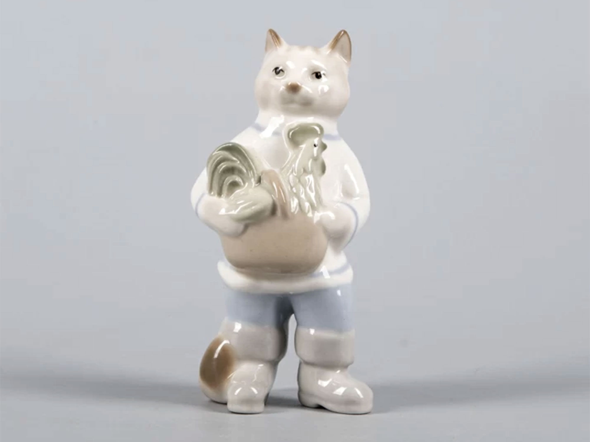 Персонажами скульптуры являются кот и петушок - два символа домашнего уюта и благополучия. Кот, хитрый и умный, изображен с умиротворенным выражением мордочки. Петушок, наоборот, выглядит немного растерянным. Скульптура отличается тонкой проработкой деталей и прекрасной цветовой гаммой. Она станет прекрасным украшением любого интерьера, особенно если он выполнен в стиле прованс или классик радуя глаз и создавая атмосферу уюта и тепла в доме