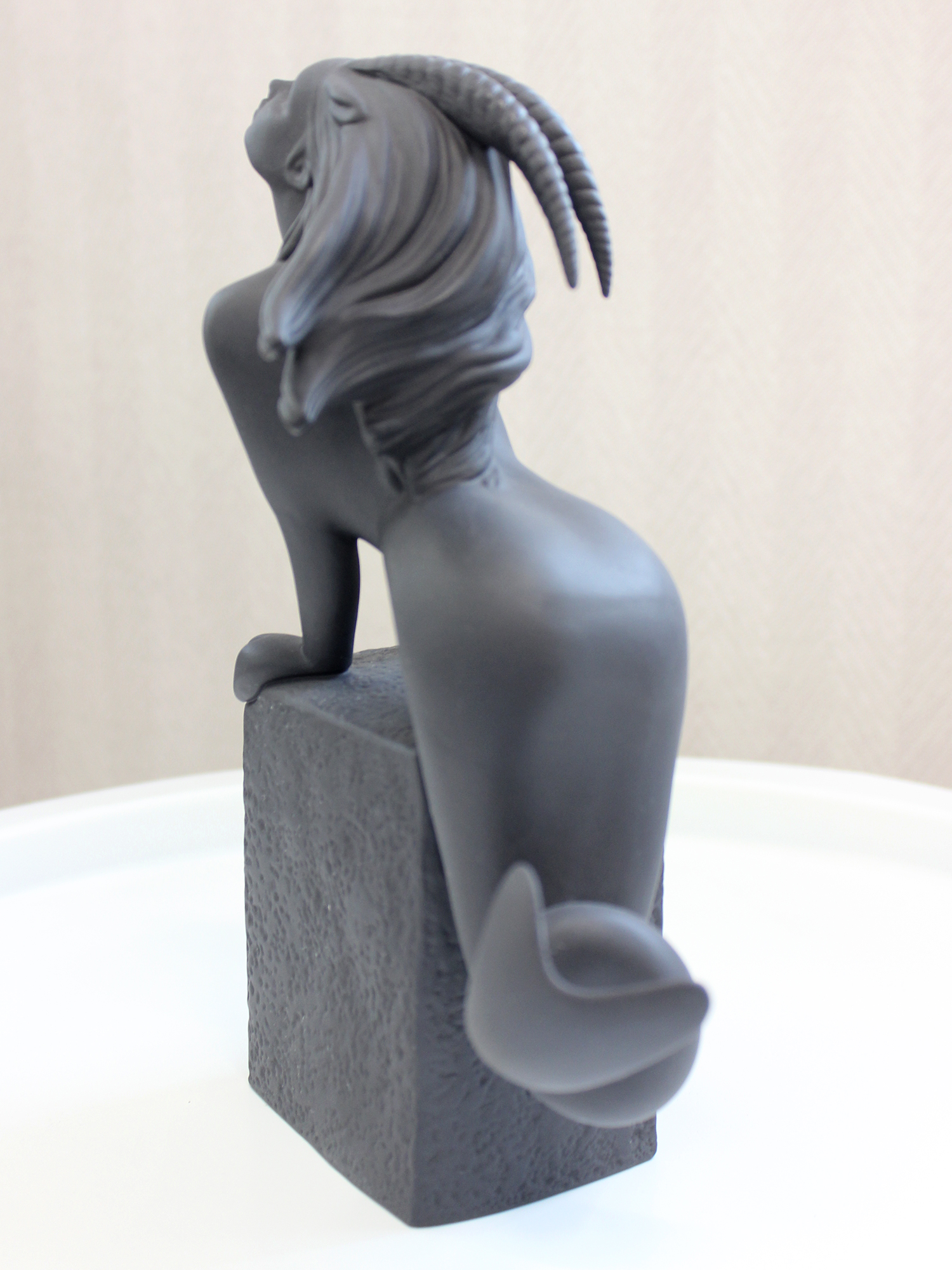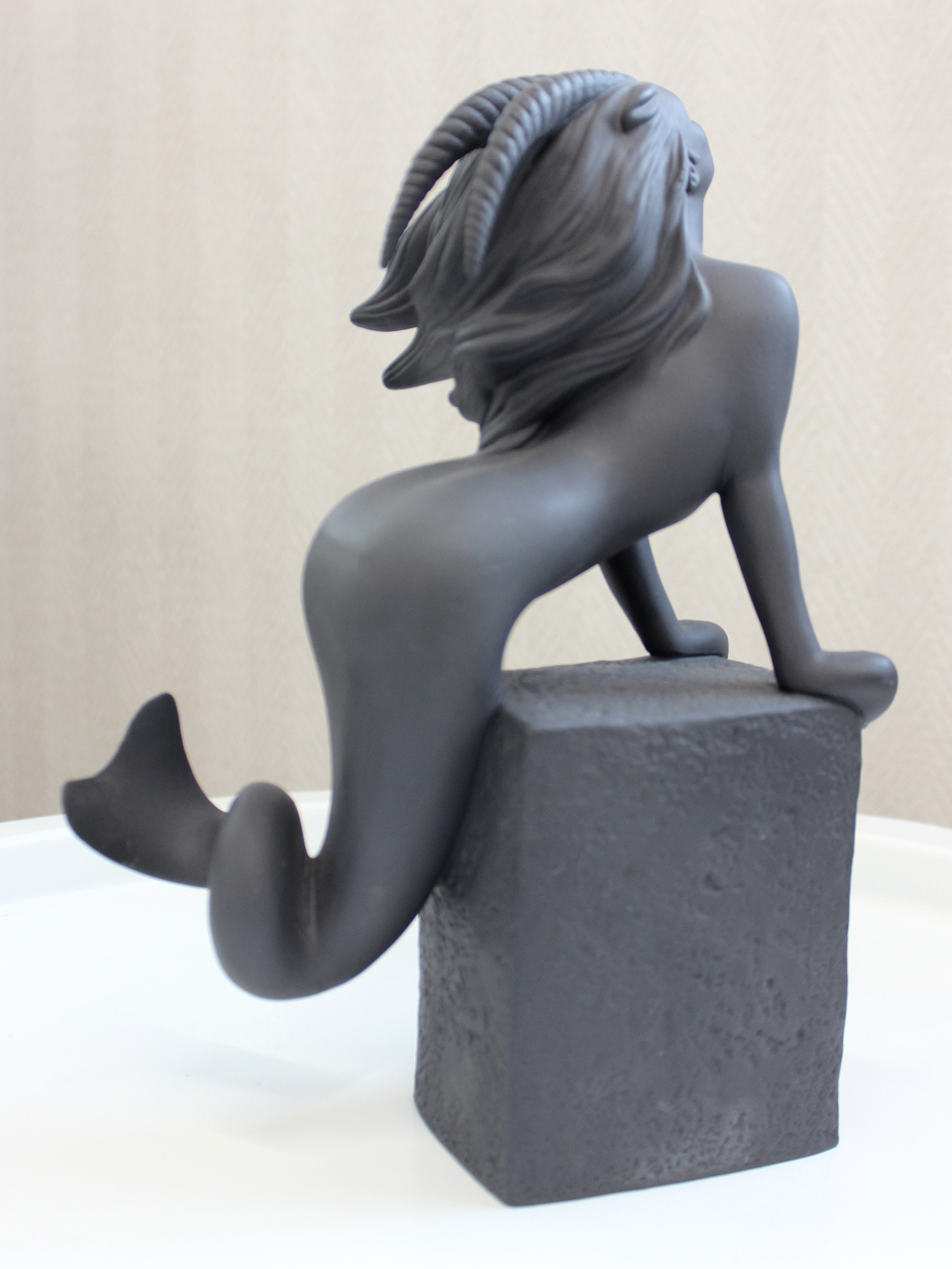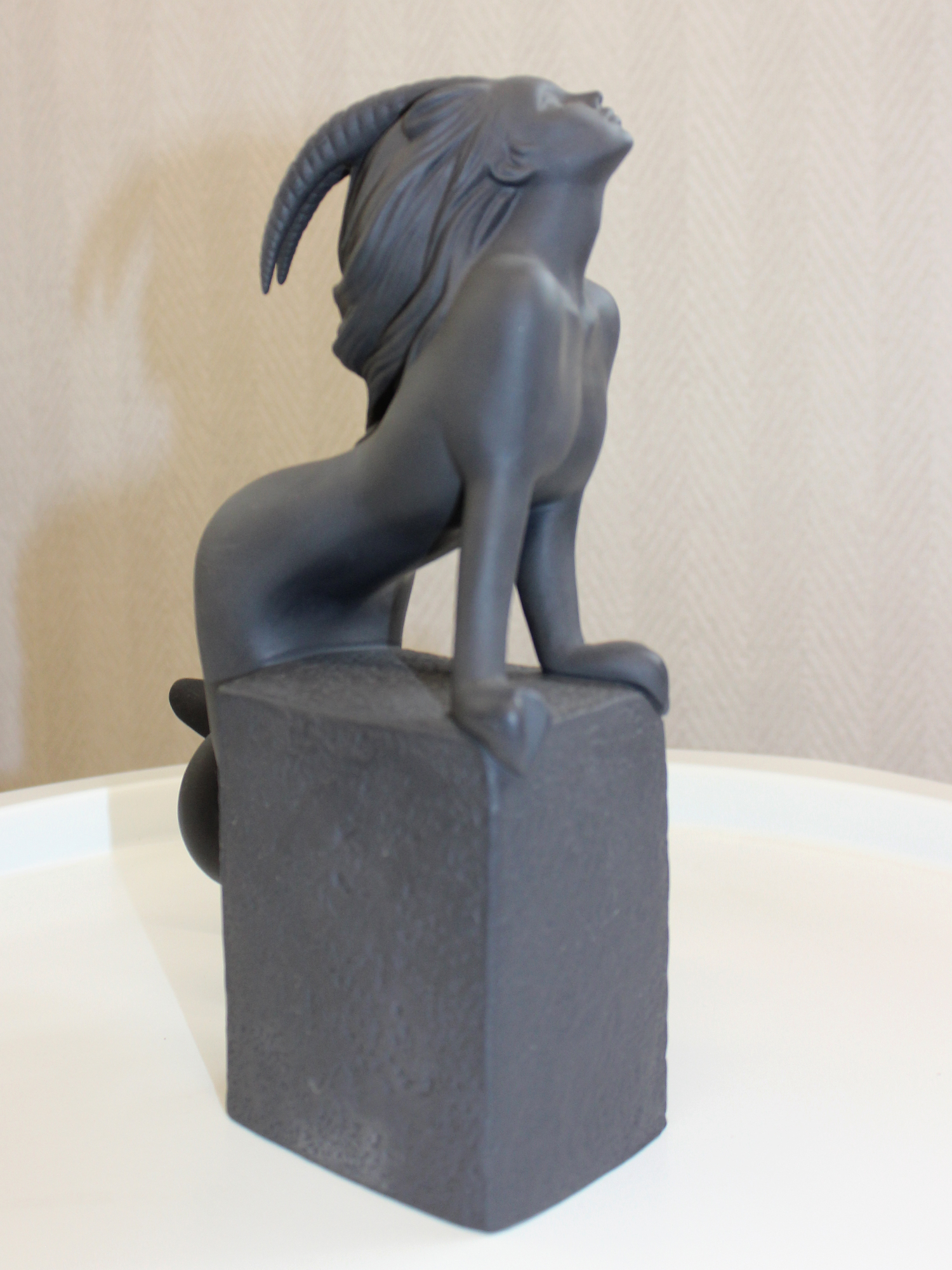 Скульптура «Козерог», 22,5 см - Производитель: Royal Copenhagen (Дания). - Коллекция: «Знаки зодиака». - Автор дизайна: Кристель Маротт. - Материал: бисквитный фарфор (неглазурованный). - Размеры (В х Ш х Д): 22,5 х 15,5 х 8 см. - Высота: 22,5 см. - Цвет: матовый чёрный. Описание - Изысканная скульптура «Козерог» — часть легендарной коллекции «Знаки зодиака» от всемирно известного датского бренда Royal Copenhagen. Изделие воплощает двухвековые традиции фарфорового мастерства и авторский почерк дизайнера Кристель Маротт. Выполненная из бисквитного фарфора, скульптура отличается особой текстурой и благородной сдержанностью цвета, подчёркивающей утончённость образа. Историческая справка Фабрика Royal Copenhagen была основана в 1775 году по распоряжению королевы Юлианы?Марии. Изначально фарфор производился исключительно для королевской семьи и аристократии, являясь символом роскоши и высокого статуса. Сегодня бренд — синоним безупречного качества и скандинавского стиля. Коллекция «Знаки зодиака», запущенная в 2003 году, сочетает: - классическое мастерство фарфорового производства; - современный авторский дизайн; - символическую глубину астрологической тематики. Особенности изделия - Материал (бисквитный фарфор). Неглазурованный фарфор с матовой поверхностью: - придаёт скульптуре тактильную выразительность; - подчёркивает детализацию рельефа; - создаёт эффект благородной сдержанности. - Цветовое решение. Матовый чёрный оттенок усиливает графичность образа, делая его универсальным для современных интерьеров. - Ручная работа. Каждое изделие проходит многоэтапный контроль качества, гарантируя безупречность исполнения. - Компактные размеры. Габариты позволяют разместить скульптуру даже в ограниченном пространстве, не теряя её визуальной значимости. Почему стоит выбрать эту скульптуру? - Эксклюзивность. Изделие принадлежит к престижной коллекции Royal Copenhagen, признанной во всём мире. - Художественная ценность. Авторский дизайн Кристель Маротт сочетает символику знака зодиака с эстетикой минимализма. - Универсальность. Скульптура гармонично впишется в интерьеры: в стиле модерн или скандинавский дизайн; классические пространства с акцентами на авторском декоре; кабинеты или библиотеки как символ интеллектуальной утончённости. - Коллекционная значимость. Предмет может стать частью собрания фарфора Royal Copenhagen или коллекции астрологической тематики. Уход за изделием - Протирать пыль сухой мягкой тканью без использования влаги. - Избегать воздействия прямых солнечных лучей для сохранения матового оттенка.