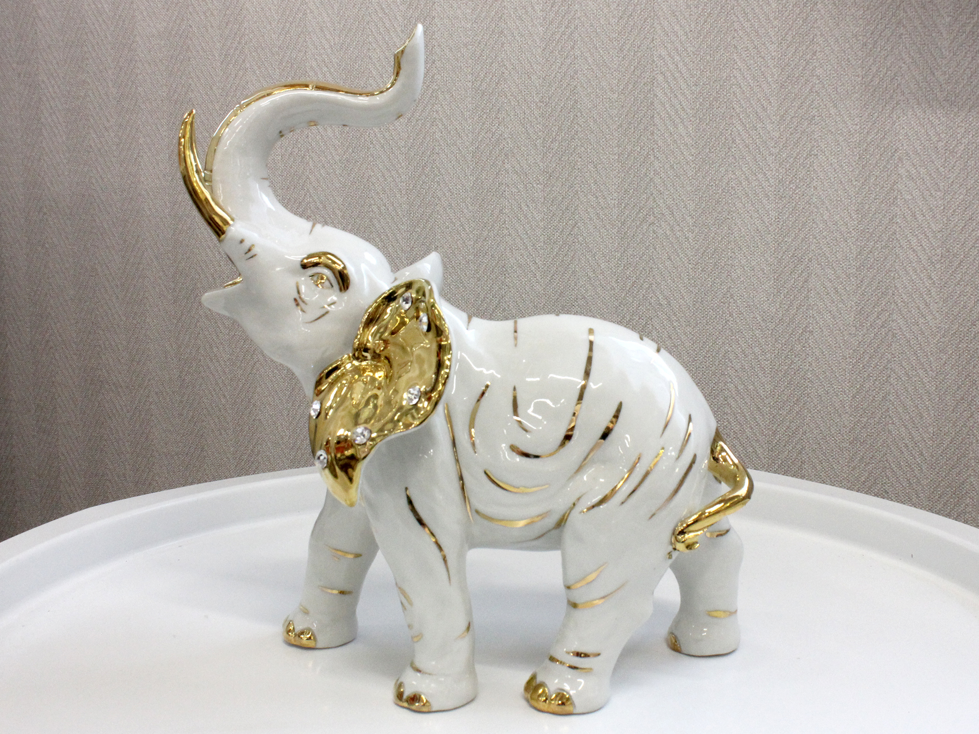 Фарфоровая скульптура «Слон» Характеристики Высота: 23 см Материал: фарфор Производитель: S.V. DI SABADIN VITTORIO & C., Италия Sabadin — известная итальянская мастерская: Основана в 1975 году Особенности исполнения Ручная роспись опытных мастеров Использование высококачественного фарфора Тщательная проработка деталей Строгий контроль качества на всех этапах Качество изделия Соответствие высоким стандартам Чистые материалы без примесей Фирменное клеймо подлинности Отсутствие вредных компонентов Эта изящная скульптура станет прекрасным украшением интерьера, демонстрируя мастерство итальянских художников и высокое качество исполнения. Благодаря оптимальному размеру, она гармонично впишется в любое пространство.