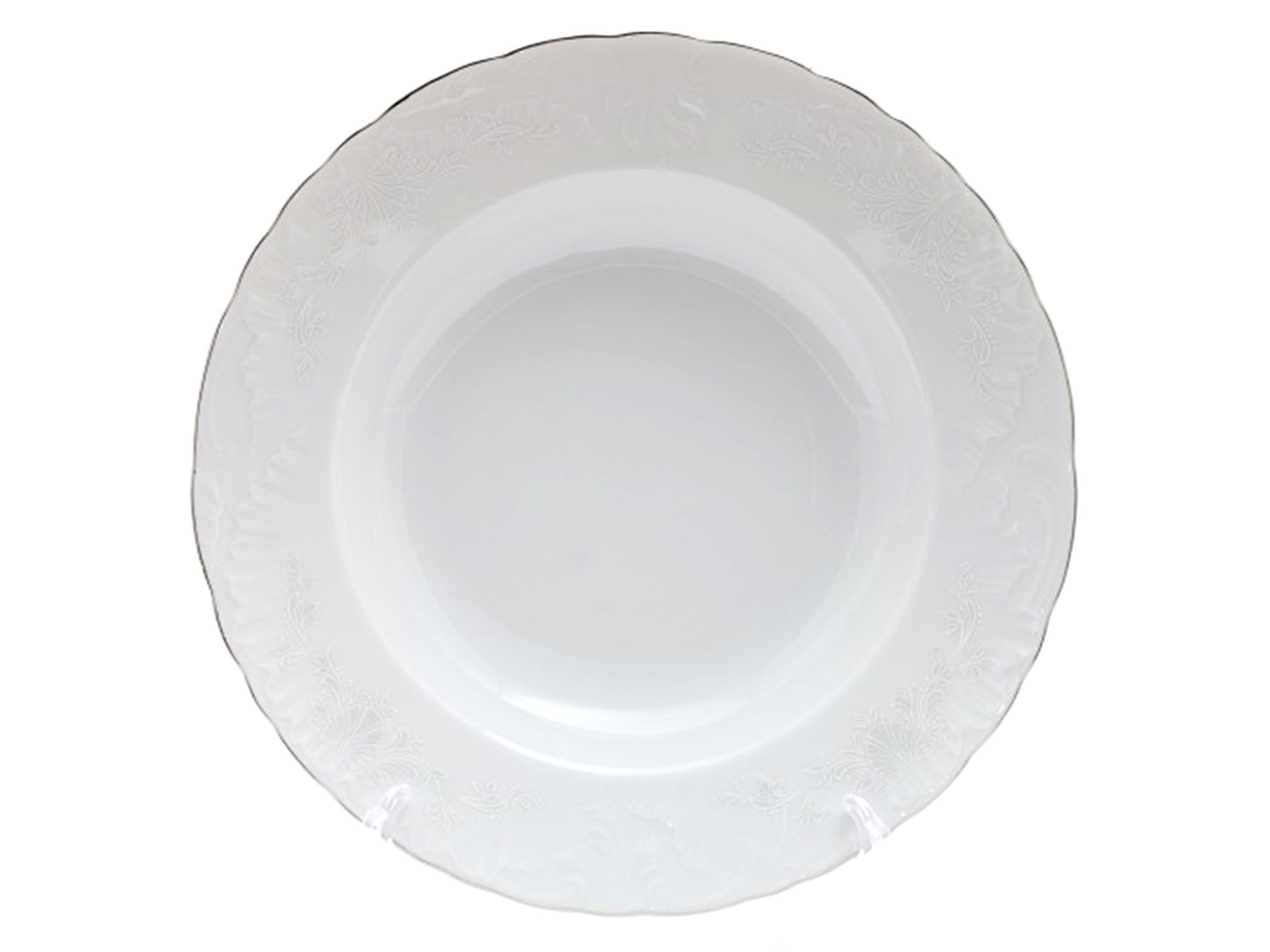 Суповая тарелка "Узор платина" создана из фарфора с изящными рельефами и сверкающим кантом серебристого цвета, чтобы подчеркнуть красоту оформления блюда и изысканность его подачи С такой тарелкой ужин или обед не только превратится в настоящее удовольствие, радуя глаз и создавая атмосферу уюта, но и подчеркнет ваше чувство стиля и хороший вкус.