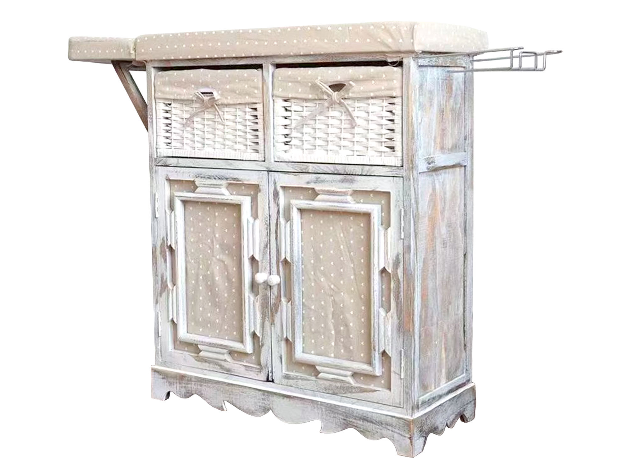 Комод с гладильной доской G967 - Габариты: 77х31х83 см - Материал: МДФ. - Цвет: белый. - Производитель: Ziwei Decoration (Китай). - Модель: G967. Преимущества: - Три функции в одном предмете. Комод одновременно выполняет роль: тумбы для хранения. компактной гладильной доски, системы организации пространства. Встроенная гладильная доска. Всегда готова к использованию — не нужно выделять отдельное место для громоздкой доски. Удобная система хранения. Вместительные полки и ящики позволяют компактно разместить: - аксессуары для глажки; - бельё и полотенца; - бытовые мелочи. Прочность и надёжность. Эргономичный дизайн и качественные материалы обеспечивают устойчивость конструкции и длительный срок службы. Универсальный дизайн. Светлый оттенок и лаконичные формы легко сочетаются с разными стилями интерьера — от современного до классического, добавляя пространству изысканности и уюта. Назначение комода: - Для владельцев небольших квартир, где важно экономить место. - Для тех, кто ценит многофункциональную мебель и практичность. - Для людей, стремящихся организовать пространство без ущерба для эстетики. - Для семей, где глажка — регулярная необходимость. Оптимизируйте своё пространство с комодом G967 — функциональность и стиль в каждой детали!